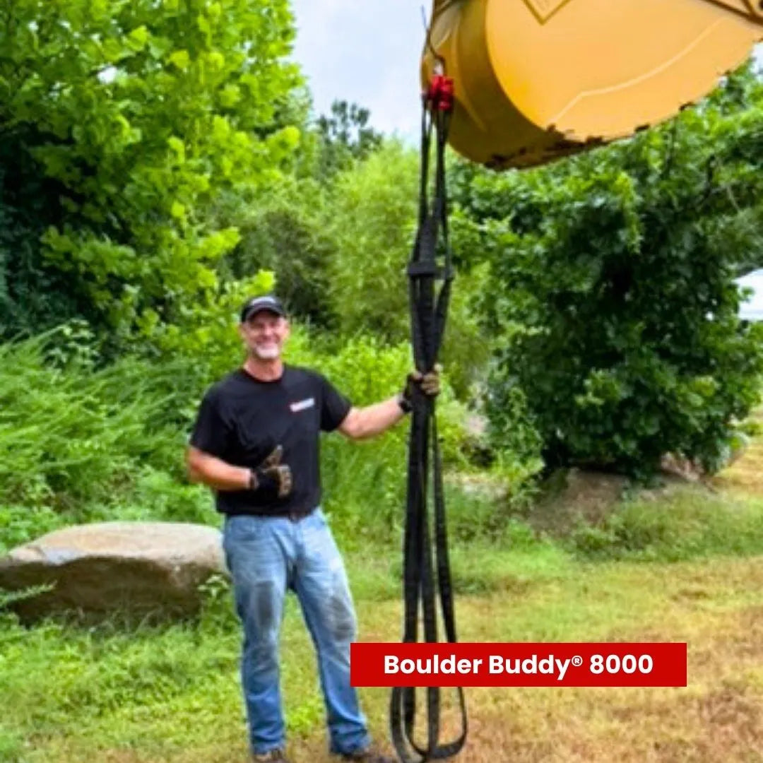 The BOULDER BUDDY® 4000, 8000, and 12000 are the ultimate tools for moving large rocks and boulders. Lightweight, easy to use, and built to last, each model adjusts in seconds and attaches to any machine.