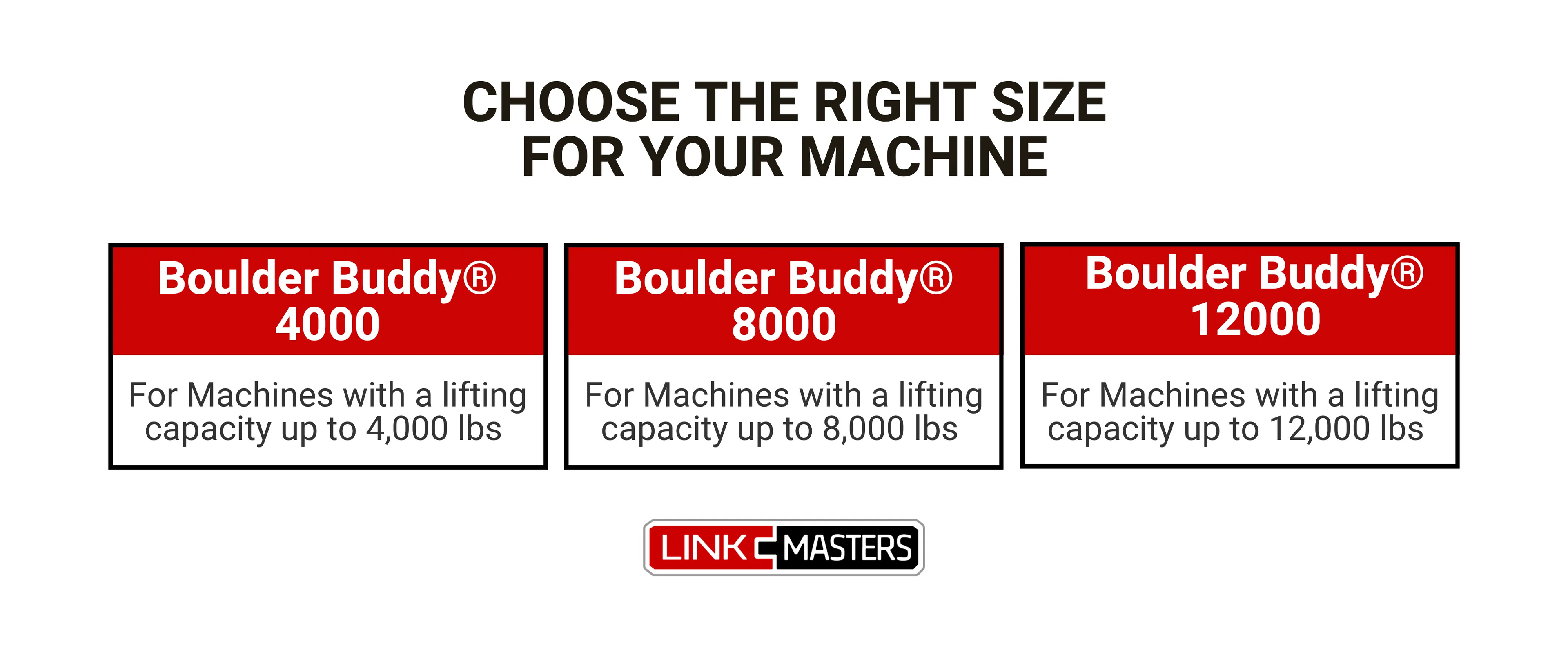 ⚠️ Select your size based on your machine’s lifting capacity — not the size of the boulder.